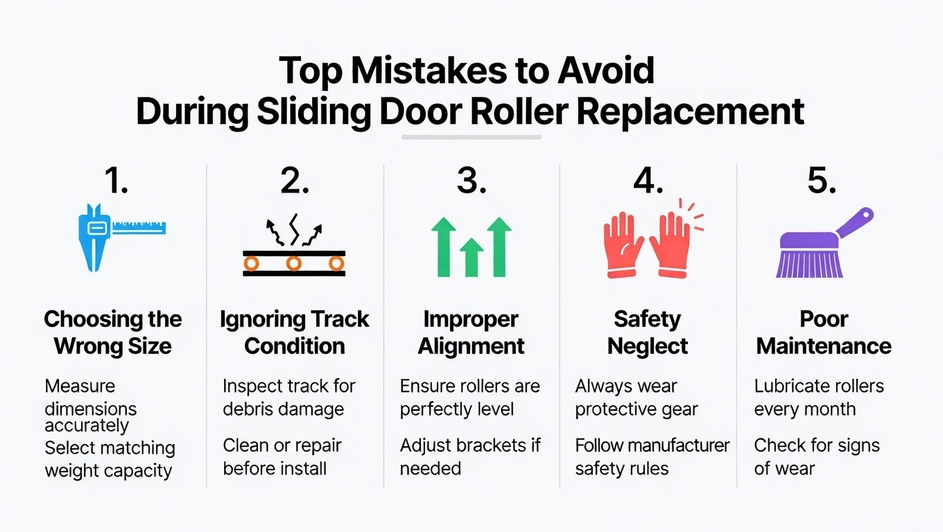 جایگزینی غلتک زمانی بهترین کار را انجام می دهد که آن را به عنوان یک به روز رسانی سیستم در نظر بگیرید: اندازه غلتک صحیح، آهنگ تمیز و سالم، تنظیم دقیق ارتفاع، و جابجایی ایمن با پانل. اجتناب از اشتباهات رایج - قطعات اشتباه، نادیده گرفتن شرایط مسیر/قاب، و تنظیم ناهموار - از سخت افزار درب محافظت می کند، تراز قفل را بهبود می بخشد، و آن لغزش بی دردسری را که قرار است درهای کشویی دارند بازیابی کند.